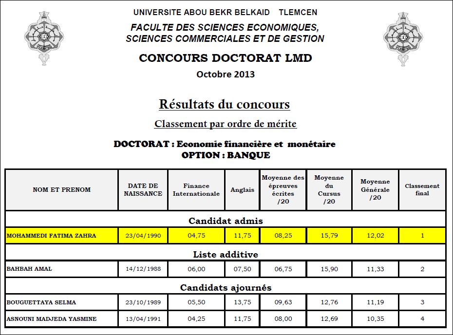 قائمة الناجحين في مسابقة دكتوراه LMD جامعة تلمسان 2013-2014